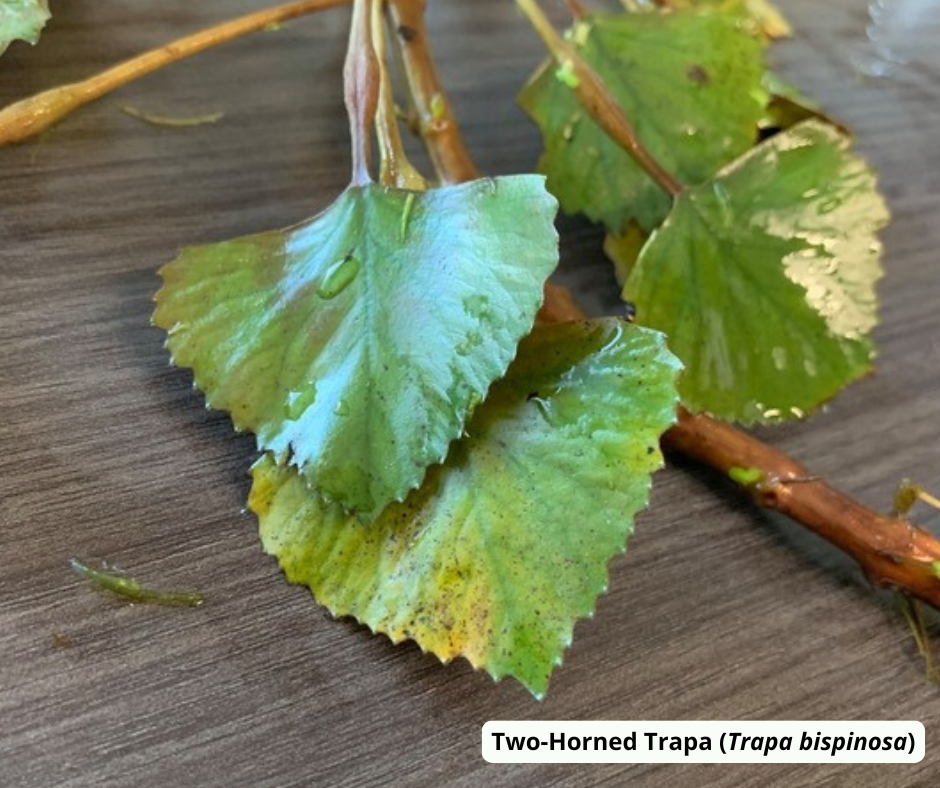 Two-horned trapa has distinctive leaves that float on the surface of the water.